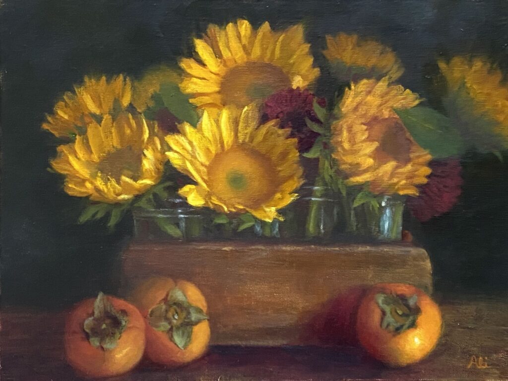 The structural challenges of perspective, shape, and value speak to her mathematical mind, while the exploration of color and light fills her with joy. Working in a representational style, Allison finds inspiration in subjects that hold personal meaning: cherished items from her home, the changing beauty of her garden, memorable travels, and especially flowers, which have become a favorite theme.