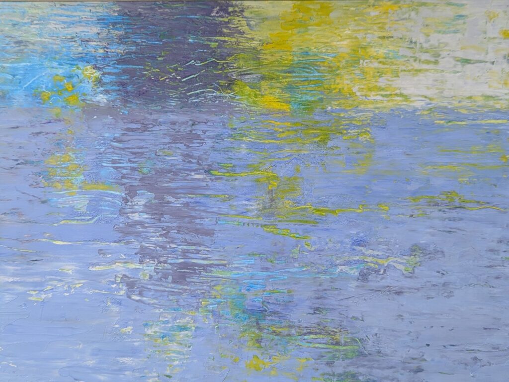 Exposure to a wide variety of art over time helped my work to evolve. I started with realism, the more realistic the better, that evolved into impressionism: softer, letting the viewer fill in some details, then I migrated towards abstraction: the paint and tools created their own story. I toggle back and forth between these styles to challenge myself.
