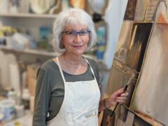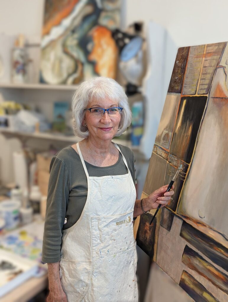 Using a variety of mediums helps stretch my imagination. I use watercolor mostly for representational subjects; acrylics for realistic, impressionistic and abstract work; mixed media and oil & cold wax for impressionism and abstract pieces. Incorporating gels, plaster, pastels, crayons, collage and altered papers enhances my options. Pushing me out of my comfort zone creates room for new discoveries, different attitudes and a new voice. This learning curve moves me forward and allows me to grow.