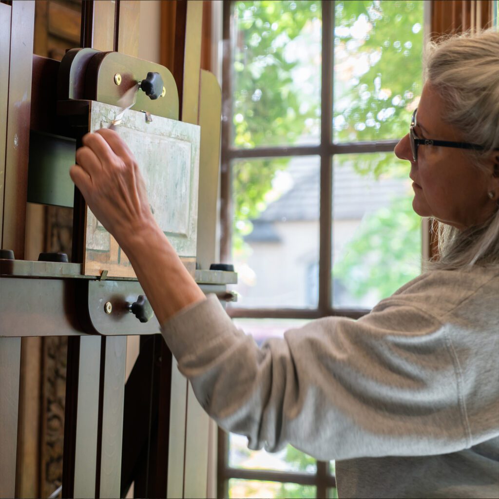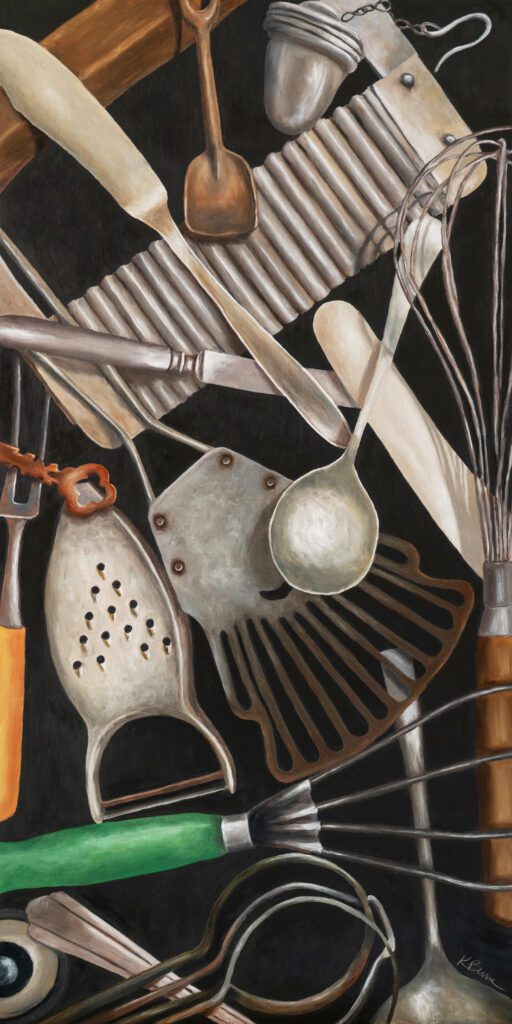 Karen Burns is a representational painter whose subjects are often ordinary objects, and has a particular affinity for showcasing vintage pieces that have been worn by time. She began in the art world as a photographer before switching to painting; photography honed her skills in creating compositions, but found that painting allowed her to further explore color and texture. She has exhibited in national and international juried exhibitions, including the American Artists Professional League, National Oil and Acrylic Painters Society, Oil Painters of America, American Women Artists, the International Guild of Realism, as well as local shows in California. She lives and works in Granite Bay.