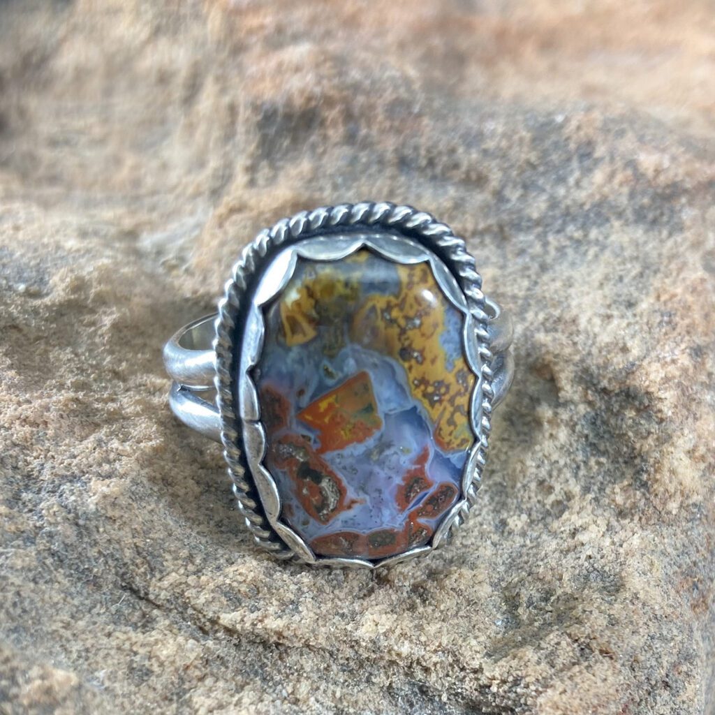 I began serious pursuit of the visual arts after moving to New Mexico in 2007, when I began drawing and depicting realistic form in still life, florals and architecture. As my interest in color grew, I added watercolor and acrylic to my repertoire. But a workshop in abstract painting techniques is where I discovered my true vehicle for creative expression. Working intuitively, I layer gesso, acrylic paint and texture to activate the painting’s surface. Line, color, and marking define shapes and structure. My latest work employs metal fabrication, in which I create jewelry and hair accessories through soldering, hammering, and patinas.